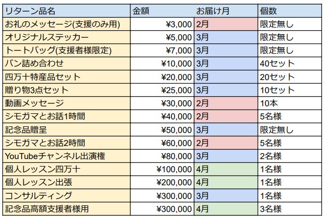 3月上旬 リターン品発送開始