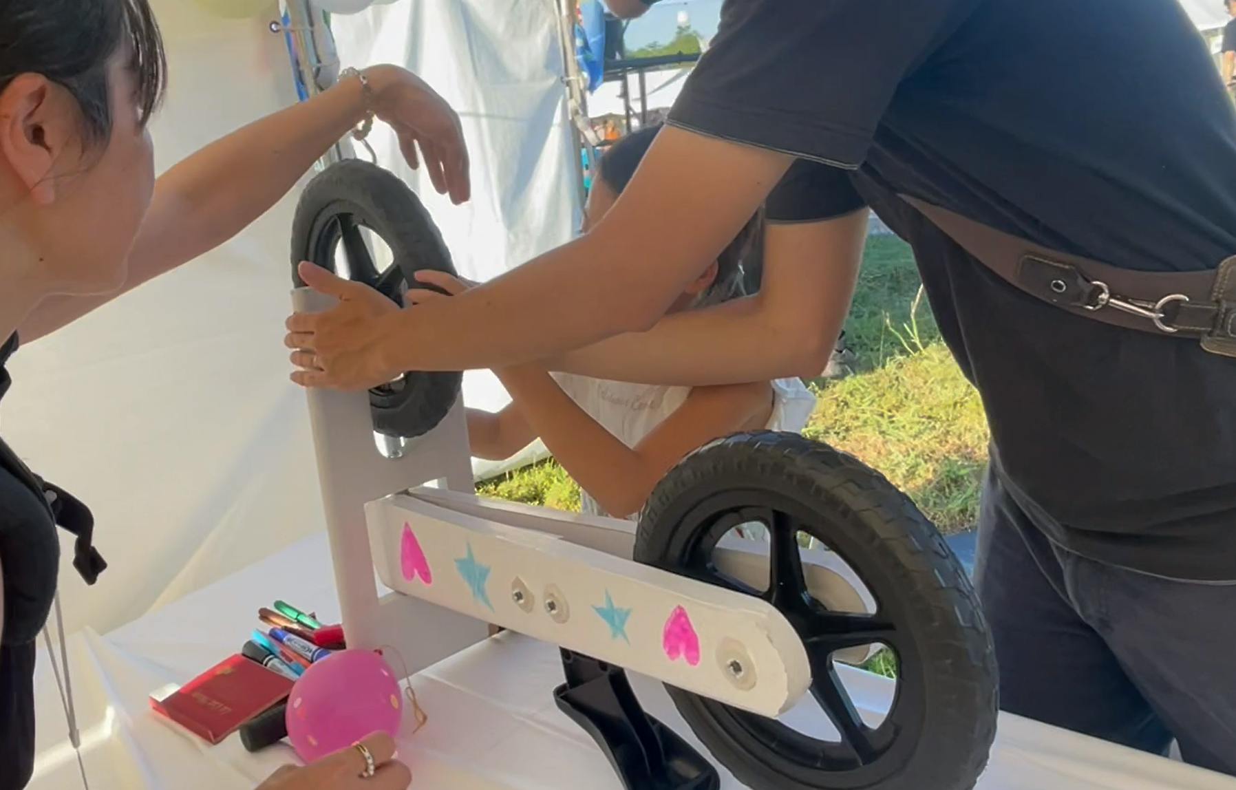 使われていない木で作られたバランスバイクで遊ぶことで、日本の子供たちにサスティナブルな視点を持ってもらうこと。