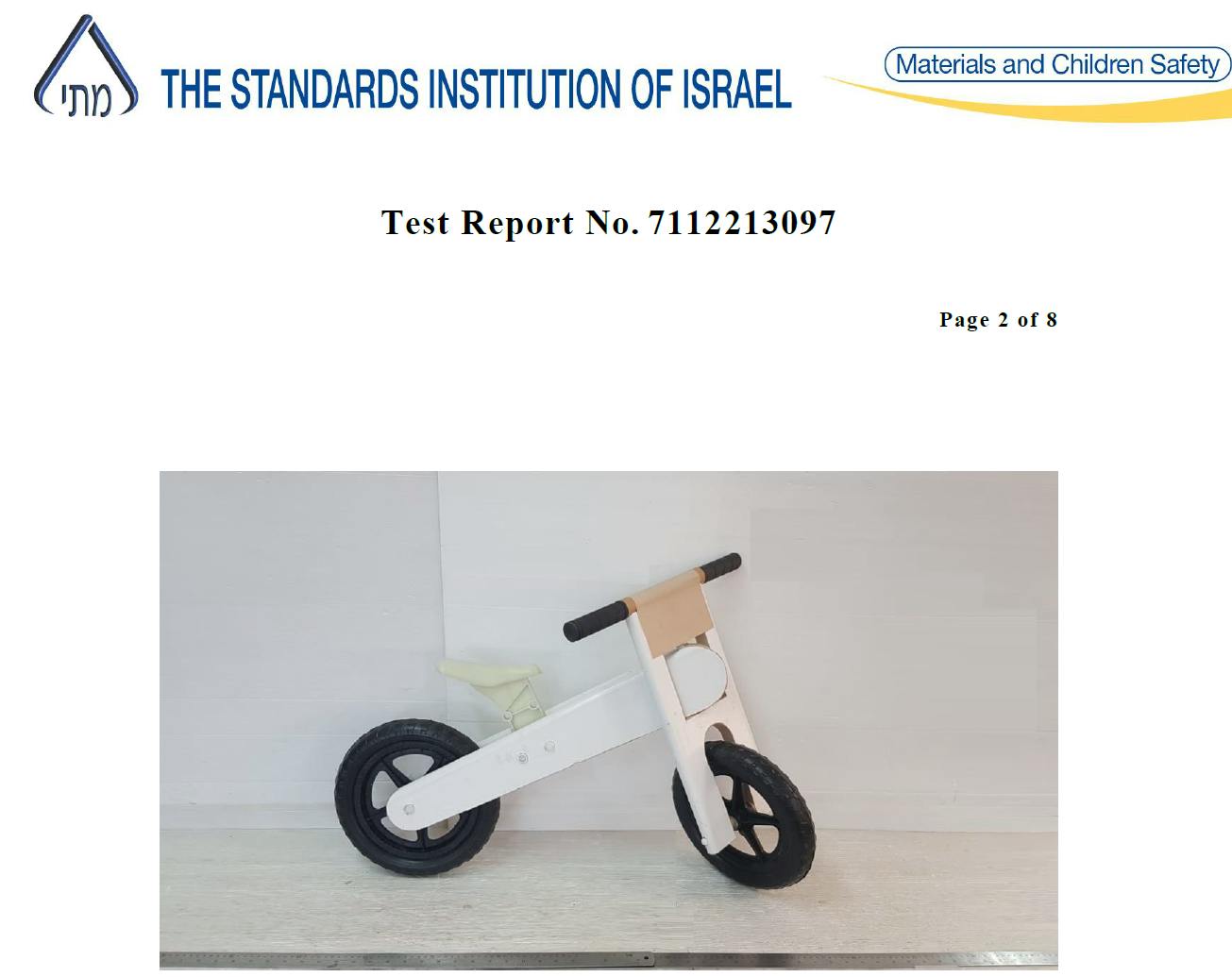 GBB<グリーンバランスバイク>は、日本では車両扱いではなく玩具扱いのため安全証明書は必要ありませんが、イスラエルでの安全基準を満たしており国際基準安全証明書が発行されています。安全な乗り物として使っていただける遊具です。