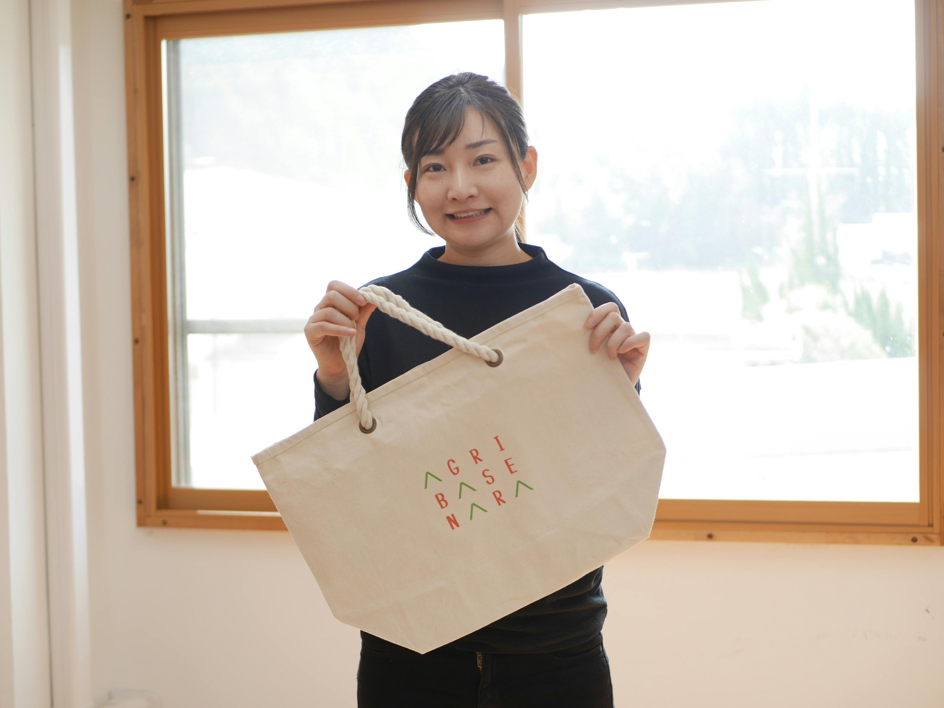 アグリベース奈良協議会の生田優希です。今回は3月お届け予定のオリジナルトートバッグとお野菜の詰め合わせリターンの返礼品が無事にできあがってまいりました。