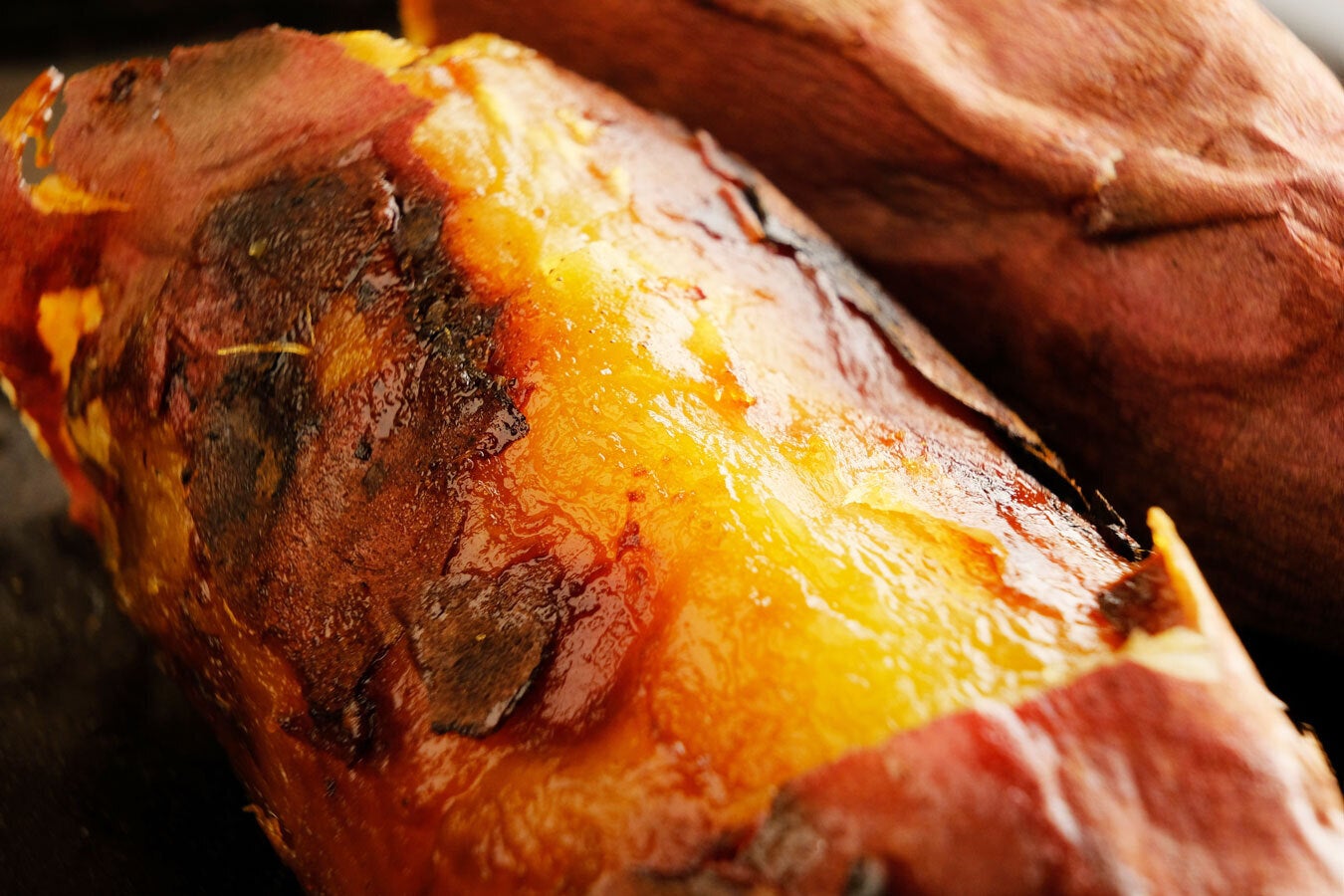 真空パックした焼き芋からは少しずつ蜜が染み出してきます。身もしっとりとして味も馴染み、凍っていないため届いてすぐに食べられます。ほくほくの焼きたてとはまた違った味わいが楽しめます。