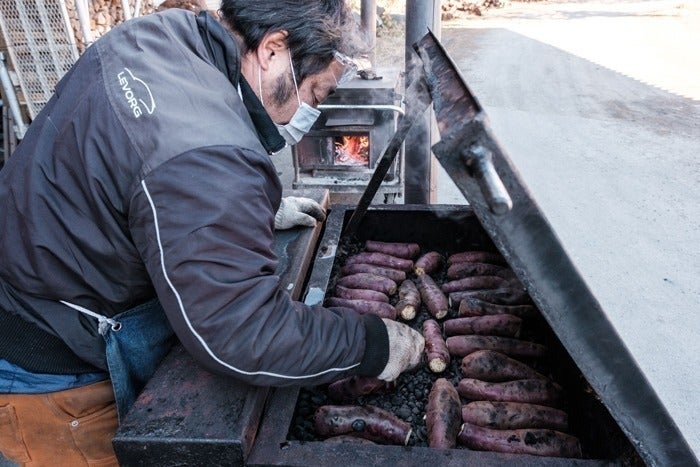 その厳選したさつまいもの甘味を最大限に出すため、「焼き」は昔ながらの石を使い、毎朝4時から3時間以上じっくりと焼き上げ、火調整は薪で行っております。