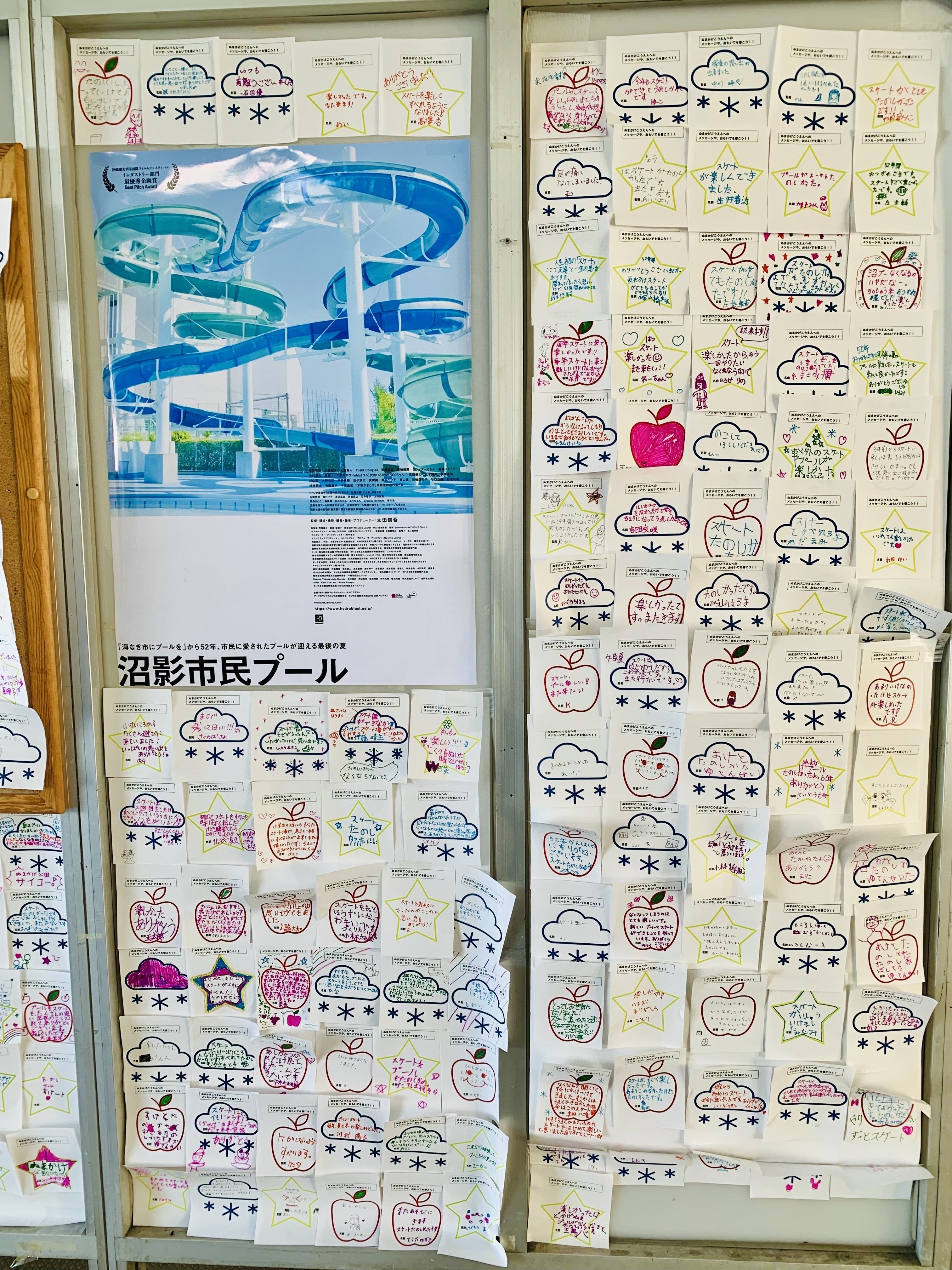 日曜日、キャップアートの調整と追加撮影で沼影市民プールにお邪魔すると、私たちの映画のポスターが、子供たちのメッセージで覆われていました!!心のこもったメッセージがたくさん。私たちが夏季営業中に始めた、「沼影市民プールさんにお手紙を書こう!」プロジェクトのスピリットが受け継がれていて本当に嬉しいです。来週末はナイトイベント。また平日昼間のスケートは人が少ないので超穴場だそうです!