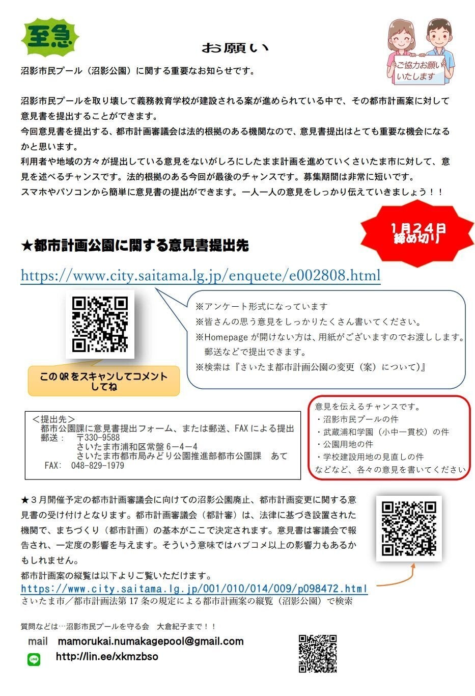 本日、クラウドファンディング最終日です。さまざまなかたちで、サポートくださった皆さまに心から感謝申し上げます。映画「沼影市民プール」クラウドファンディング、現段階で、総額1,696,277円、129名の方にご支援いただきました。本当にありがとうございます。2月10日に開催される「沼影市民プールありがとうイベント」には、映画制作チームも見届けにいきたいと思っております。以下、さいたま市HPより---------【沼影市民プールありがとうイベントの開催について】1971年の開園以来、みなさまにご愛顧いただきました屋外プールを令和5年度末に閉園いたします。52年間の思い出を振り返りながら、ありがとうの想いを込めて、イベントを開催します。みなさまのご参加をお待ちしております。開催日令和6年2月10日(土)開催時間10:00~19:00※アイススケートは 9:00~20:50 まで営業いたします。イベント内容1.おもいでメッセージお絵かき 10:00~15:00 流水プールの中州エリア(幼児用プール周辺)で、おもいでメッセージをお絵かきしましょう。 イベント受付で筆と塗料をお配りします。2.バックヤード見学・おもいでフォト撮影ツアー 10:30~16:30 流水プールを稼働するポンプ室や、スライダーの上の踊り場まで係員がご案内します。 事前受付開始:10時から 見学・撮影ツアーのスタートは、それぞれ10:30、11:30、13:30、14:30、15:30、16:30となります。 1回のツアーは10名~15名程度でご案内いたします。3.夏のメッセージカード・おもいで写真展 10:00~19:00 新館(アイススケート入口建物)の2階にて、令和5年度の夏季プールで利用者様からいただいたメッセージカードや、 沼影市民プールの懐かしい写真などを展示します。4.アイススケートショー 11:00、14:00の2回公演 お子様も楽しめるスケートショーがご覧いただけます。5.流水プールイルミネーション 13:00~19:00 光る風船にメッセージを書いてプールに流しましょう。 13:00からメッセージの記入とプールに浮かべる受付を開始します。イベント費用イベント入場料・参加費 無料※アイススケートは別途料金が必要です。イベントに関する問合せ南部公園整備課TEL 048-840-6179FAX 048-840-6189施設に関する問合せ沼影市民プール(さいたま市南区沼影2-7-35)TEL 048-861-9955FAX 048-861-9957