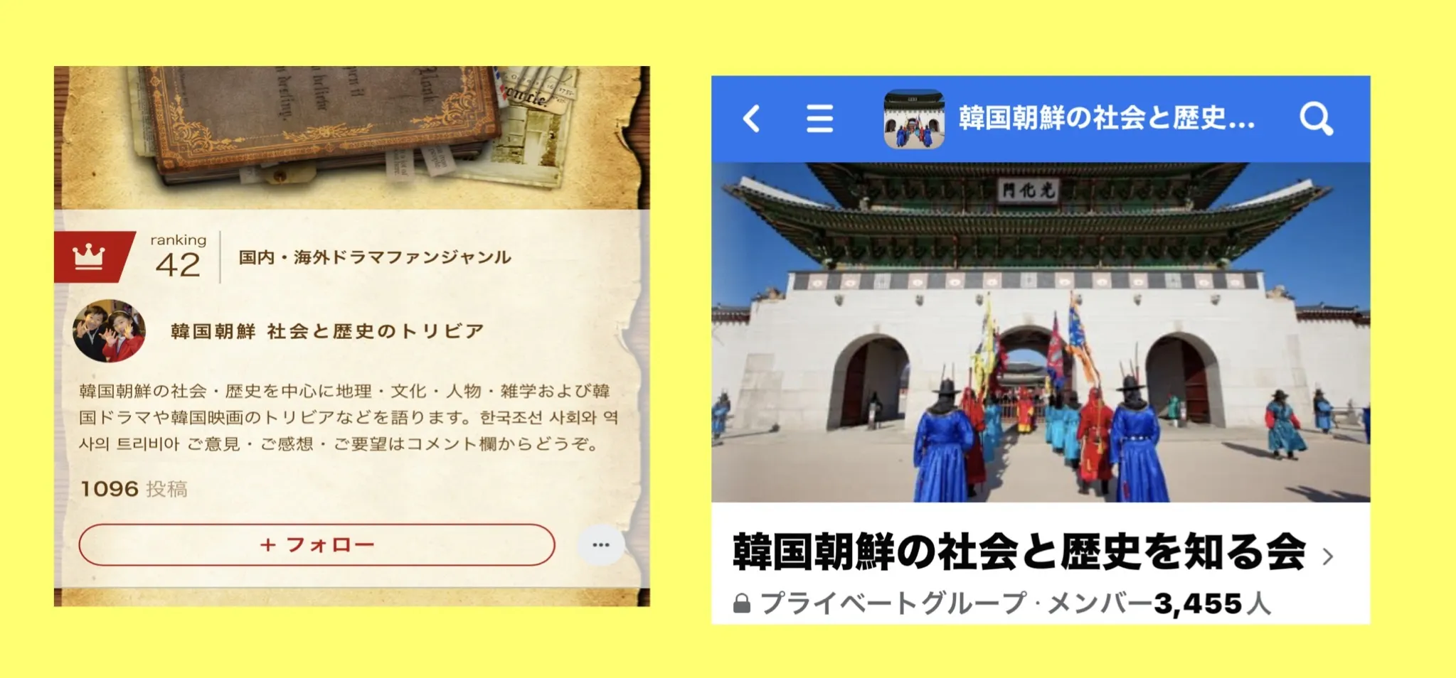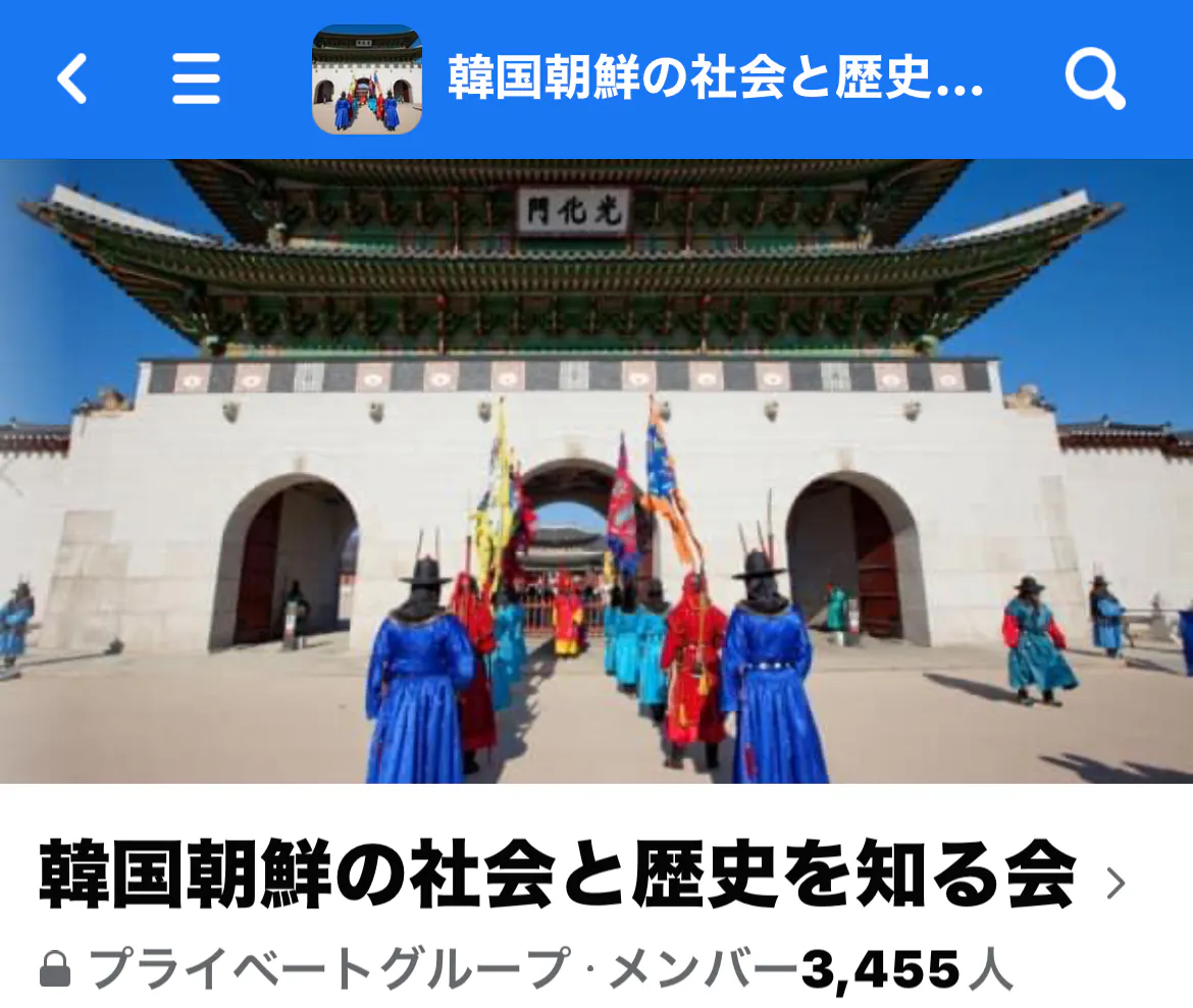 Facebookのプライベートグループ『韓国朝鮮の社会と歴史を知る会』を主幹しており、3450余名の方々と交流しております。