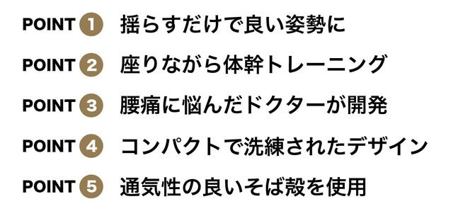 この特許技術によって、座るだけで常に骨盤を理想の角度に導きます。座った瞬間、座面が動いて、無意識に姿勢が整い、「良い姿勢」となります。