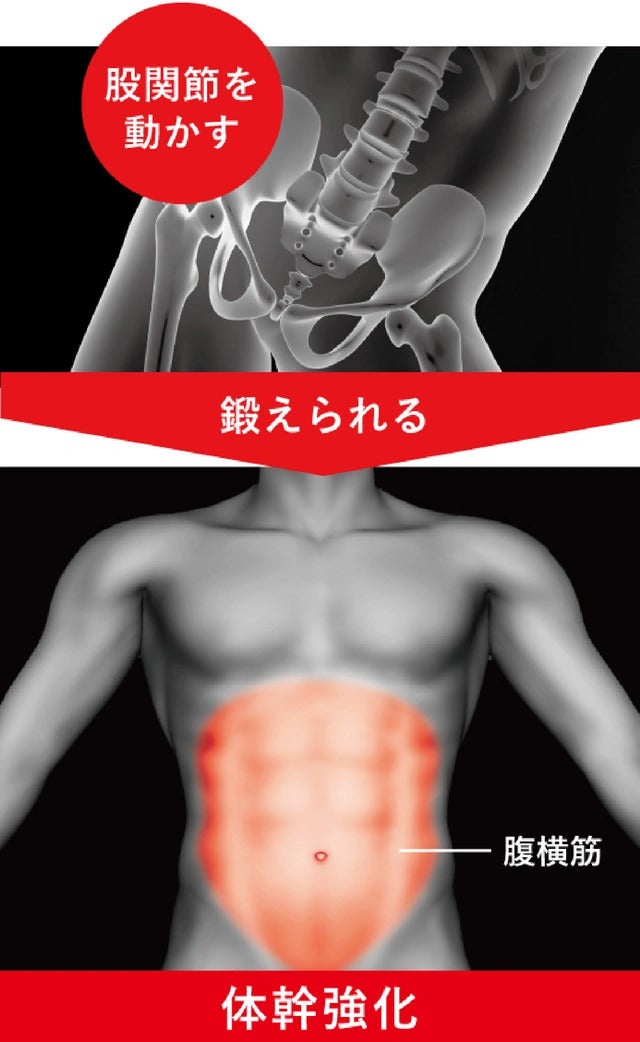 お腹周りは体幹、背骨、腰椎の3つでバランスを保っています。中でも、体幹の土台となる「腹横筋」は、コルセットのようにお腹周りを支えています。しかし、この筋肉が弱ると腰椎と骨盤への負担が増え、腰痛が加速してしまうため、「体幹」を強化することで正しい姿勢をキープできるようになり腰にかかる負担が軽減されると言われています。