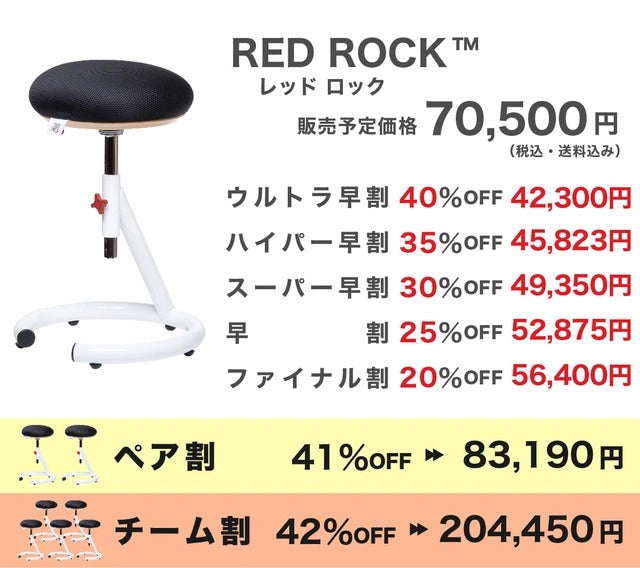 一人でも多くの人が「より良く座り、より良く生きること」になりますように。あなたにとって 「REDROCK レッドロック」がやっと巡り合えた理想のイスとなりますように。