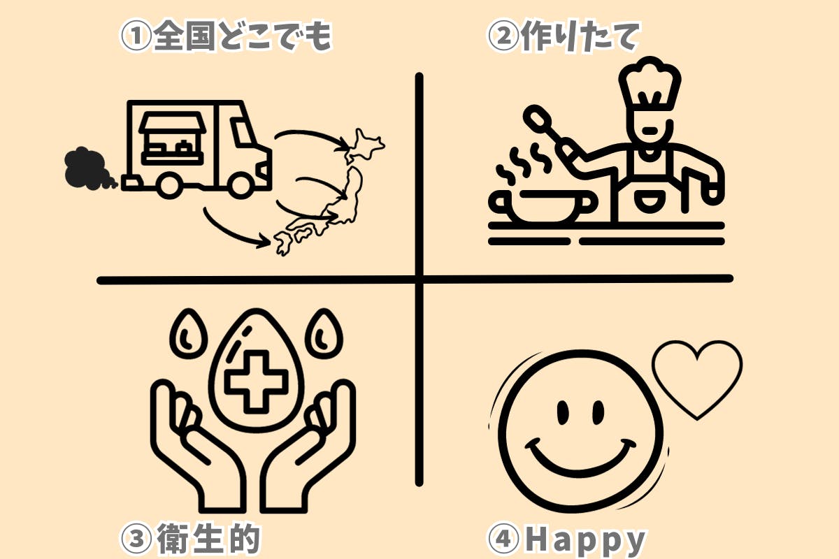 安全においしいものをどこでも作りたてで提供できると考えたときにベストなのがキッチンカーだとたどり着きました。