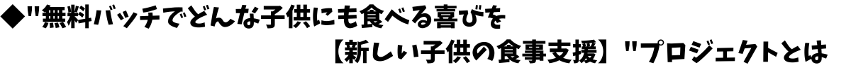 はじめまして。今回、"無料バッチでどんな子供にも食べる喜びを【新しい子供の食事支援】"プロジェクトを