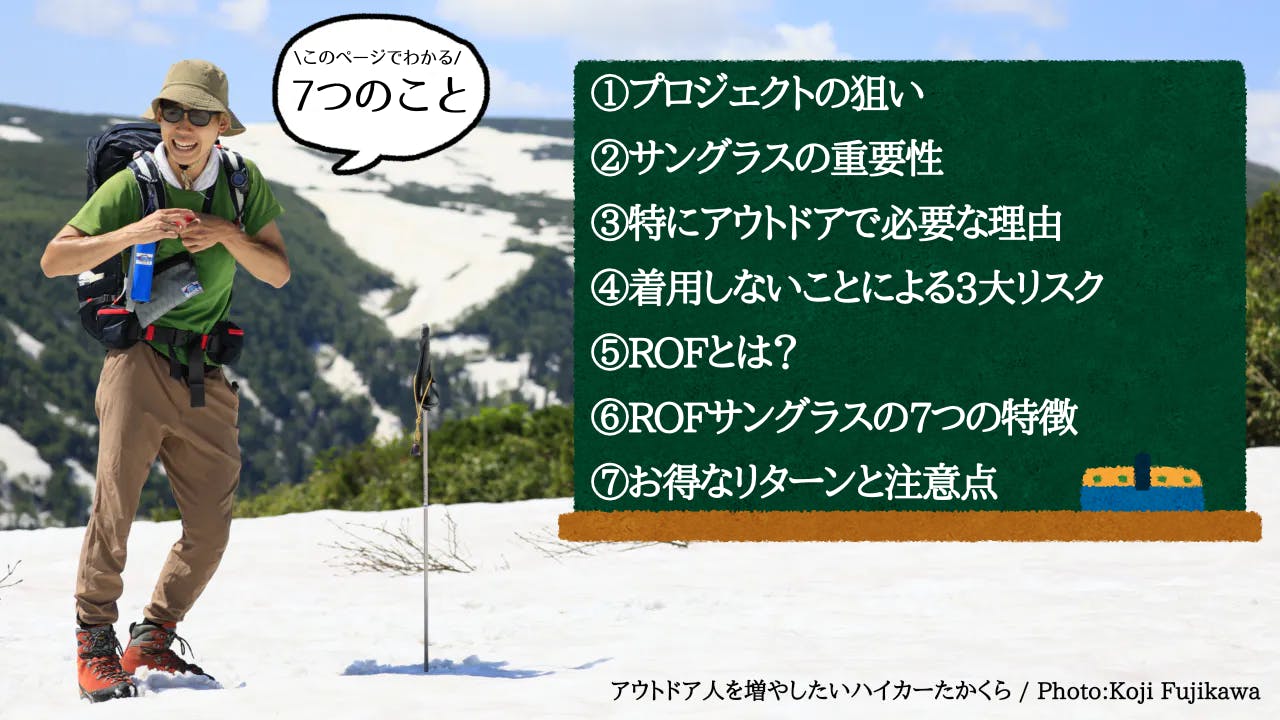 私ハイカーたかくら、アウトドアを楽しむ人にはもちろん、気軽な外出をする人にも瞳を保護する大切さを伝え、健やかに暮らしとアウトドアを楽しむ『サングラス人』を増やしたい!と本気で思っています。
