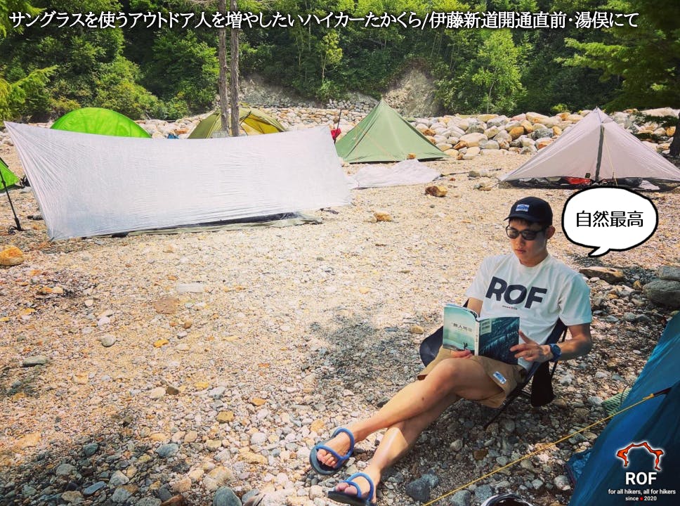 テンプルにROFの潔いデザイン。日本もROFロングトレイルのセクションハイク。このサングラスをかけて日々を楽しもう。