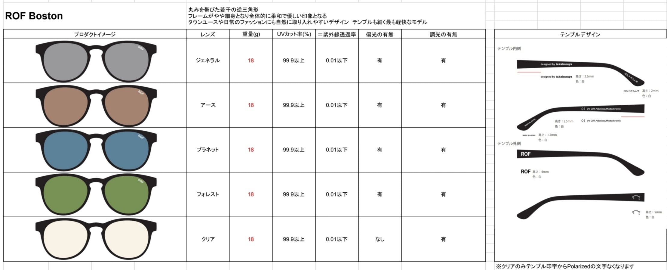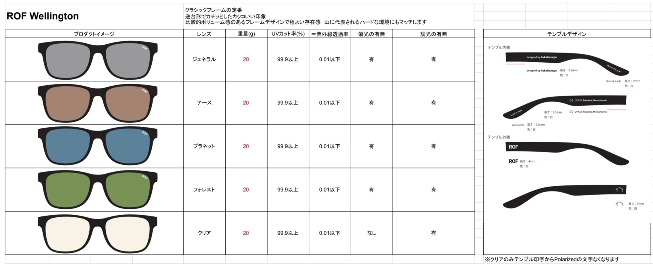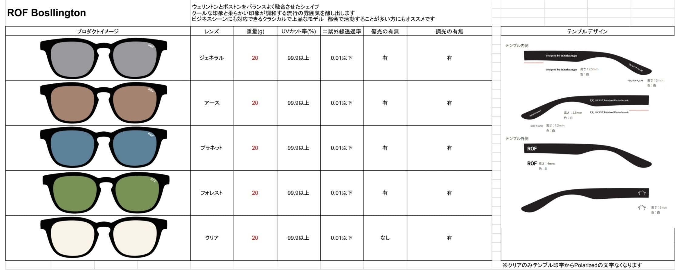 ROFサングラス 7つの特徴