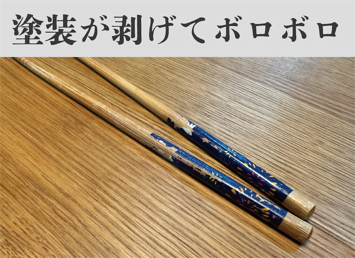 10年ほど前にプレゼントとしてもらい、以来毎日大事に使ってきました。しかし、経年劣化の波は無常にも押し寄せ...祖母からもらった箸は大きく傷んでしまい、毎日の食事で使うことができなくなってしまいました。
