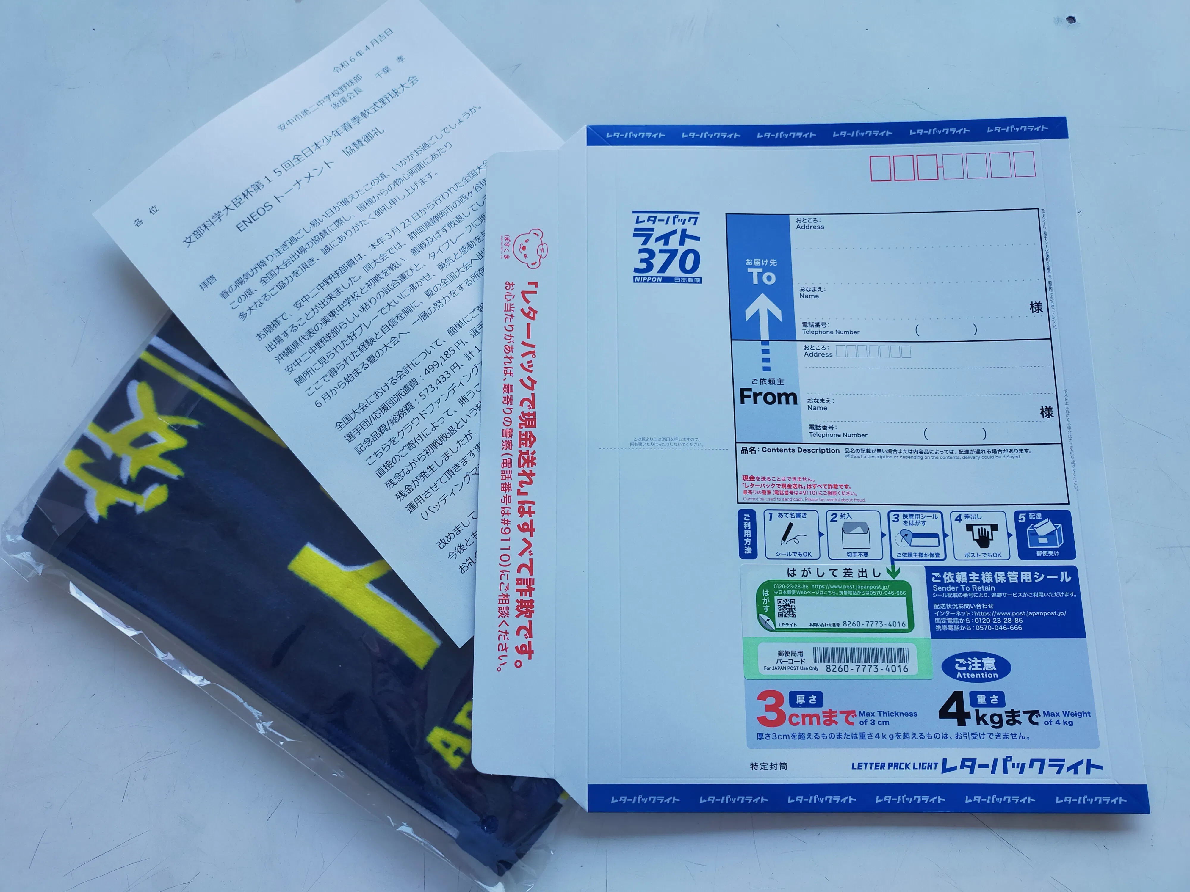 ※今大会の出場記念に保護者でデザインを考えた、安中二中野球部保護者会のオリジナルタオルをメインに、大会中に取った写真などをリターンさせて頂きます。