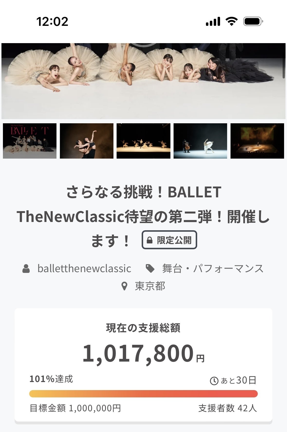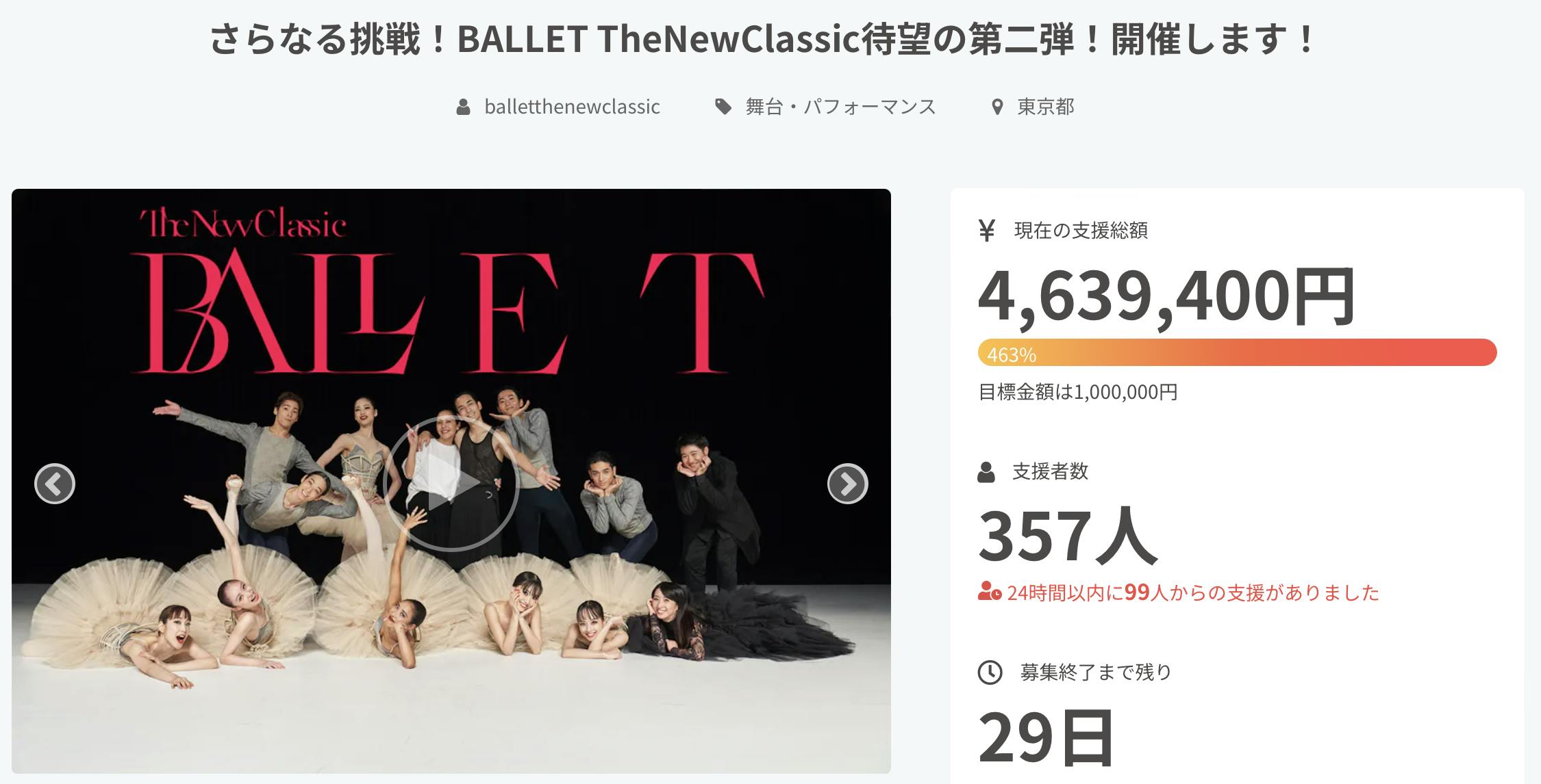 昨日、3月15日12時にスタートいたしました「BALLET TheNewClassic 2024」のクラウドファンディング「さらなる挑戦!BALLET TheNewClassic 待望の第二弾!開催します!」。たくさんのご支援をいただき、無事に、どころか、