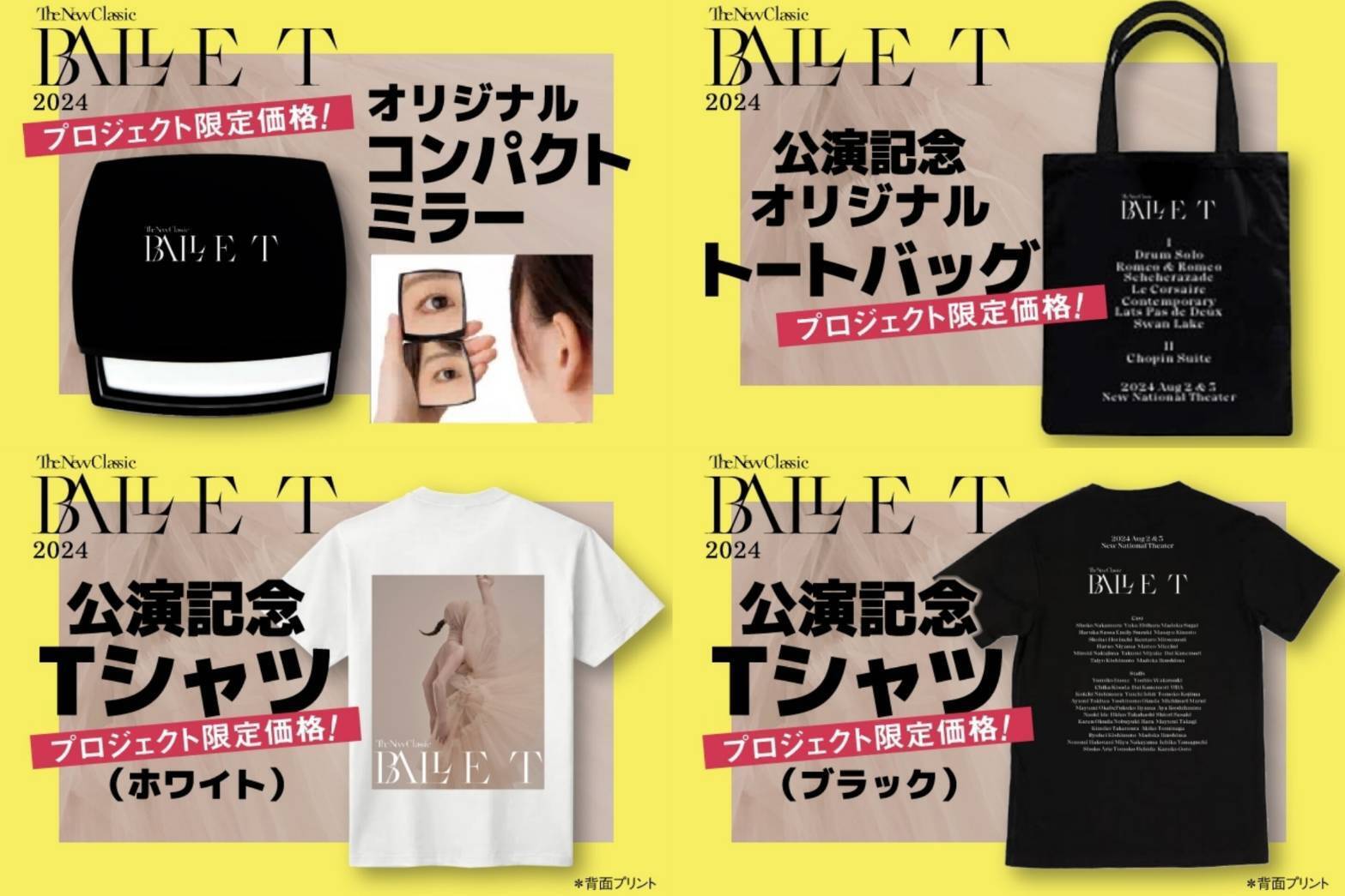 また「BALLET TheNewClassic 2024 グッズおまとめセット」では、以上4点に加え、2024公演パンフレット (+巻末お名前掲載)、公演シネマ視聴権(永年視聴)を、2000円お得にお求めいただけます!
