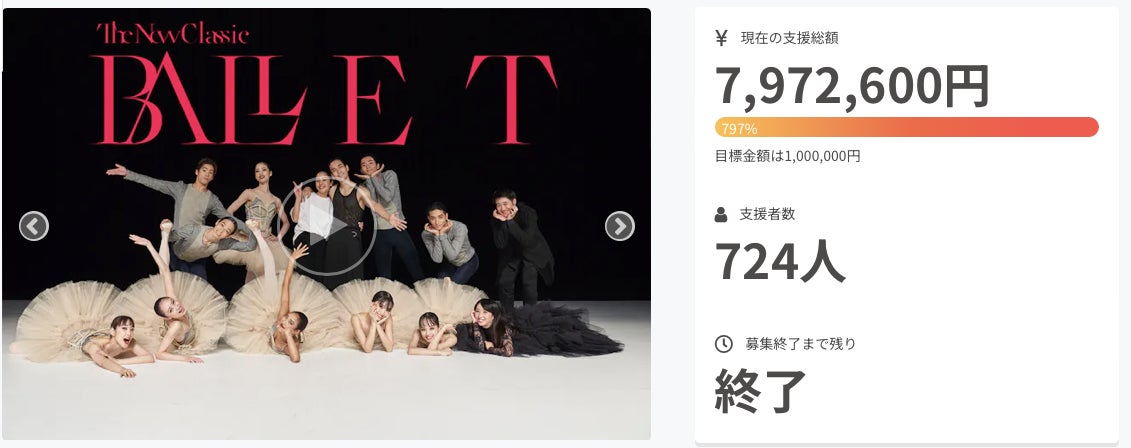 たくさんのご支援と応援をいただき、堀内將平くん、「BALLET TheNewClassic」制作チーム、クラウドファンディング制作チーム、共々感謝の気持ちでいっぱいです。