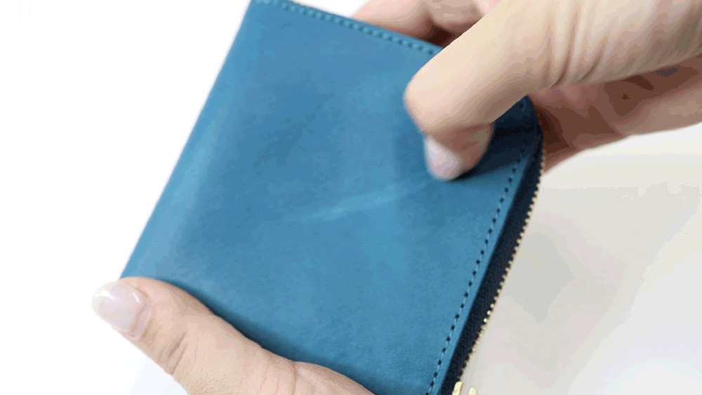 表面を押したり、こする事で、革内部の油分が移動し、傷が消えたり、目立たなくなる特性がございます。