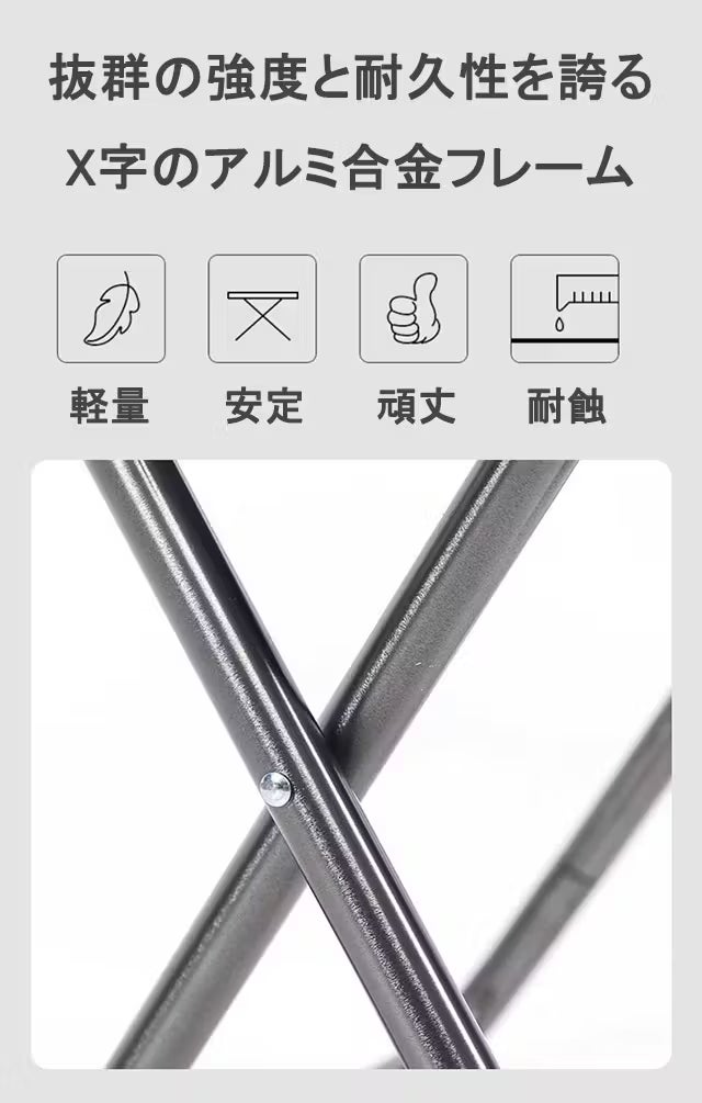 軽量性を確保する上でやや太いアルミ合金ポール使用し、X字に組み合わせたことで後ろに転倒しにくく、頑丈さもバッチリです。