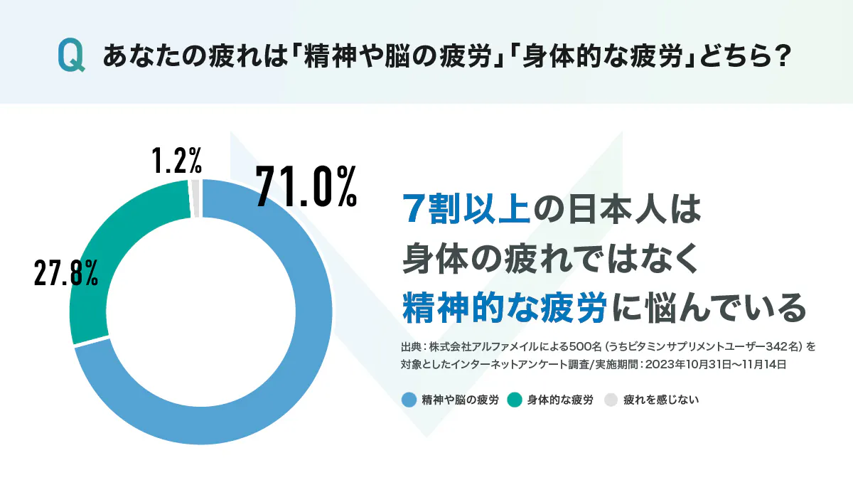 上記の調査結果のように実は7割以上の方は体ではなく、精神や脳の疲労に悩んでいるのです。
