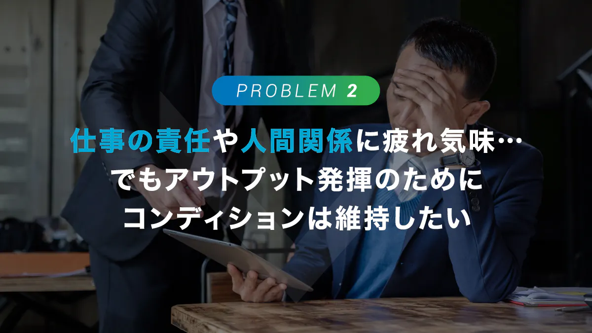 今回ナイトプロテインが開発を行うエリクサーの対象は精神と身体の疲労に悩むビジネスマン。
