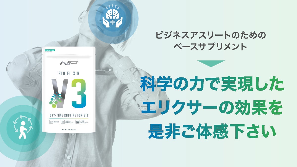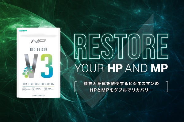 上記3つの特徴が実装されたバイオエリクサーV3で、HP回復(肉体疲労軽減)とMP回復(精神疲労軽減)のダブルのリカバリーを是非ご体感下さい