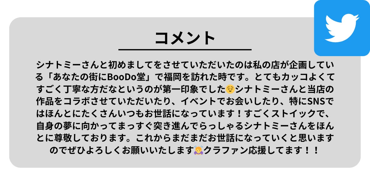 私はShinatomyを運営する中で「100人中1人の心に刺さってほしい」をモットーに活動を続けてきました。100人中1人の心にしか刺さらないということは、それだけ万人受けしないということ。かくいう私はきっと100人中99人の方ではなく、1人の方にいます。それが良いとか悪いとかではなく、「自分はこれが好きだ」といえることは当たり前ではないこと、それを表現できることに幸せを感じました。