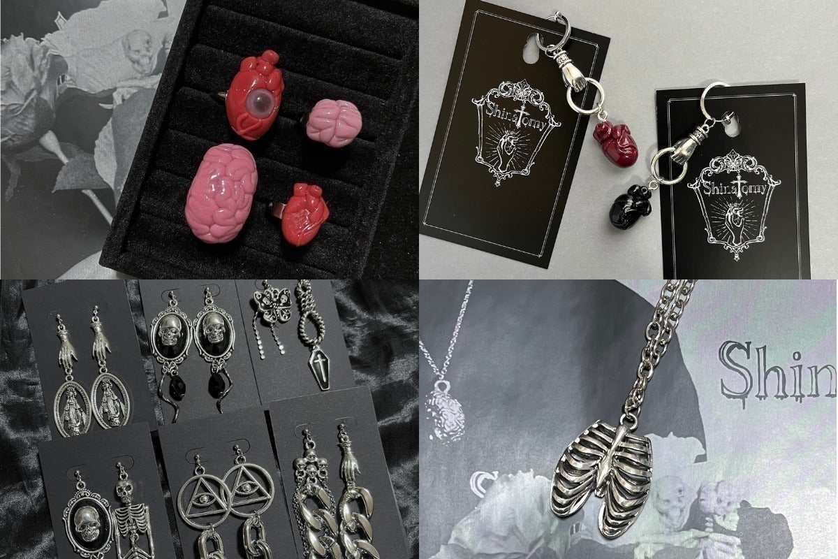 国内外から集めた人体をモチーフにしたアクセサリーを中心に、クリエイターさんとのコラボ商品などを含む当店オリジナルアイテムを展開しています。