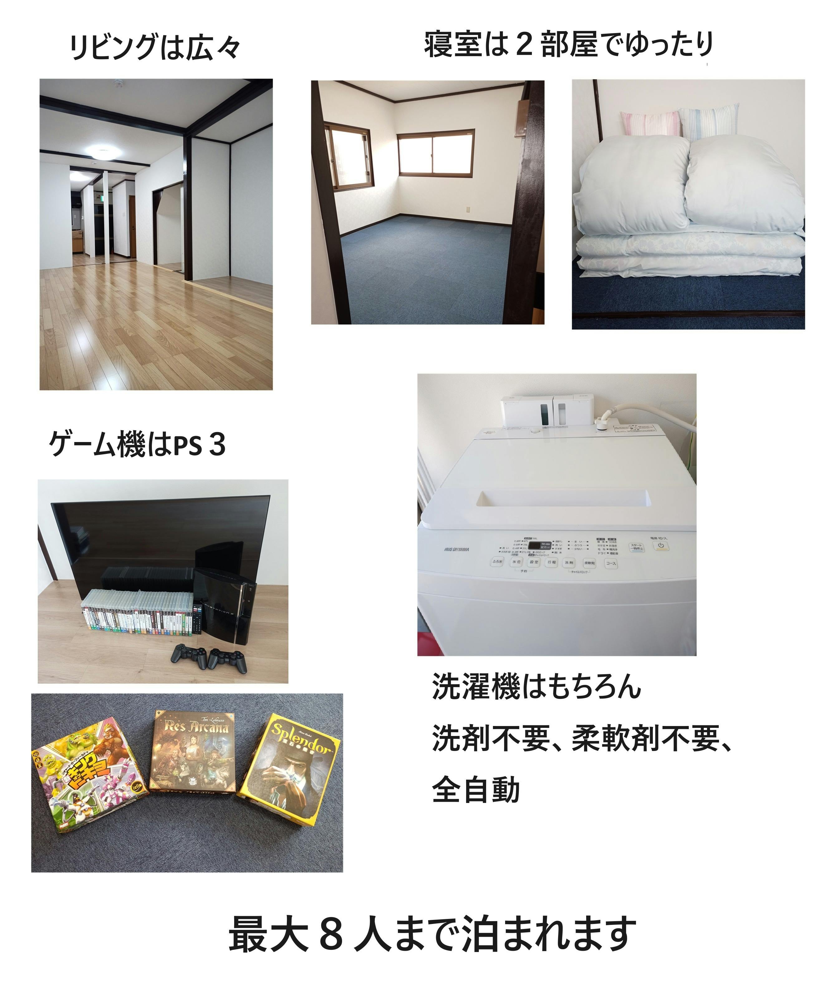 ・充実の室内アミューズメント、レトロゲーム機から最新ゲーム機など、複数ご用意があります。大画面でゲーム、映画、Youtubeも見放題となっております。