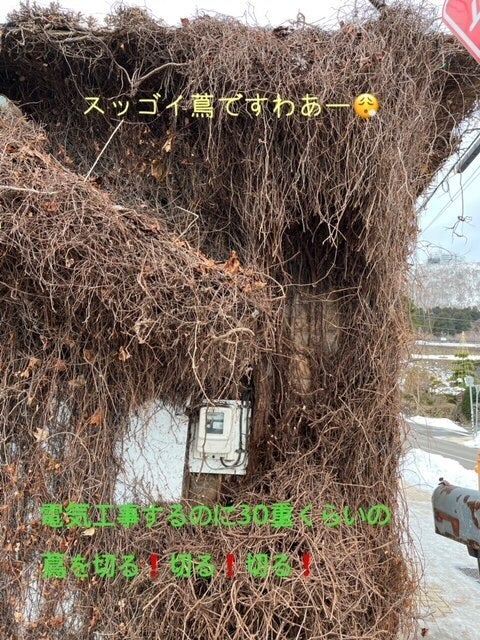 電気工事屋さんに依頼したところ、この蔦何とかして・・・と言われまして