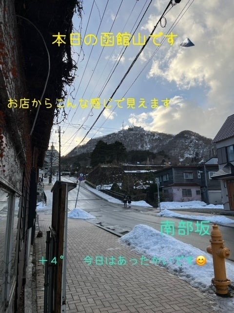 思うようには結果が残せていませんが、応援して下さる方々の温かい思いがとっても嬉しいです。お店からはこんな感じで函館山が見えます。昨日は函館も暖かったです。
