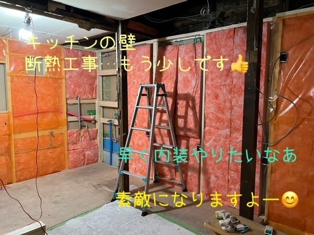 昨日もキッチンの断熱工事作業と天井断熱作業でした。