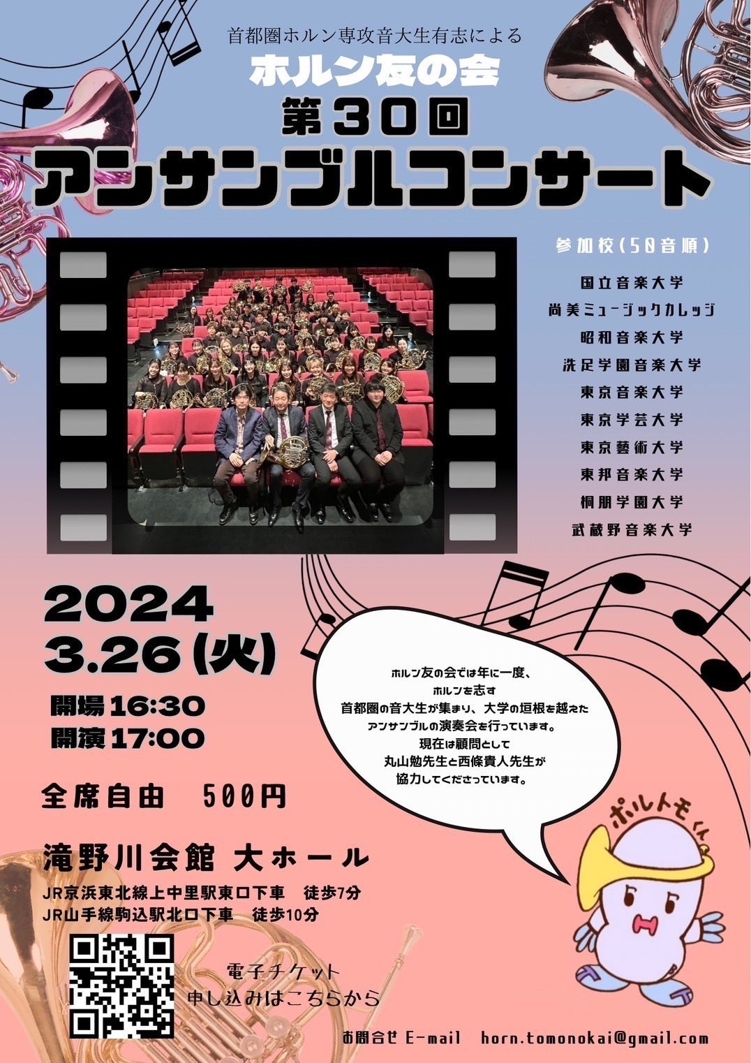 今年度、ホルン友の会は30年の節目を迎えております。3月には第30回目となる記念定期演奏会を企画しており、その演奏会を成功させる為、ホルン友の会の意向に賛同してくださる方々から援助をして頂けないかと思い、今回クラウドファンティングに挑戦させて頂いております。