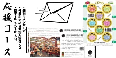 3000円の御支援頂いた方に「井波彫刻総合会館」の入館券2枚と「獅子~ル」1枚を差し上げます。