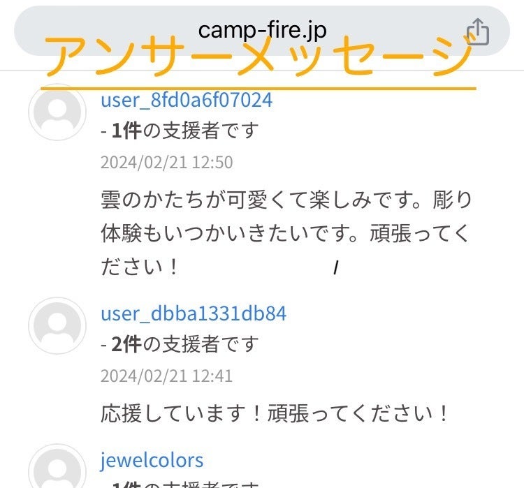 たくさんの方々にご支援頂き、メッセージも頂きました。そのアンサーメッセージをこちらで順番に投稿していきます↓