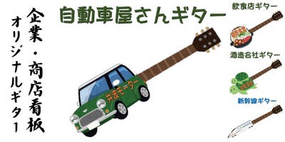 言葉でお伝えしてもなかなかイメージしにくいと思い、少しポップですが下記の「広告宣伝エレキギター」のイラストを作成させて頂きました。※すべてフリー画像の「いらすとや」さんの素材を加工させて頂きました。