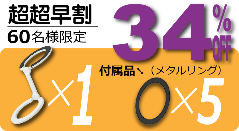 ※特に、重いタブレットを使われる場合は、メタルリングをタブレットの背面に事前に貼り付けてから使用するのが前提です。また、メタルリングが貼られた位置、Magicリングの折り角度などによって対象物を支えられない場合がございます。重要なのは、バランスの取れる角度を手で微調整することが大切です。