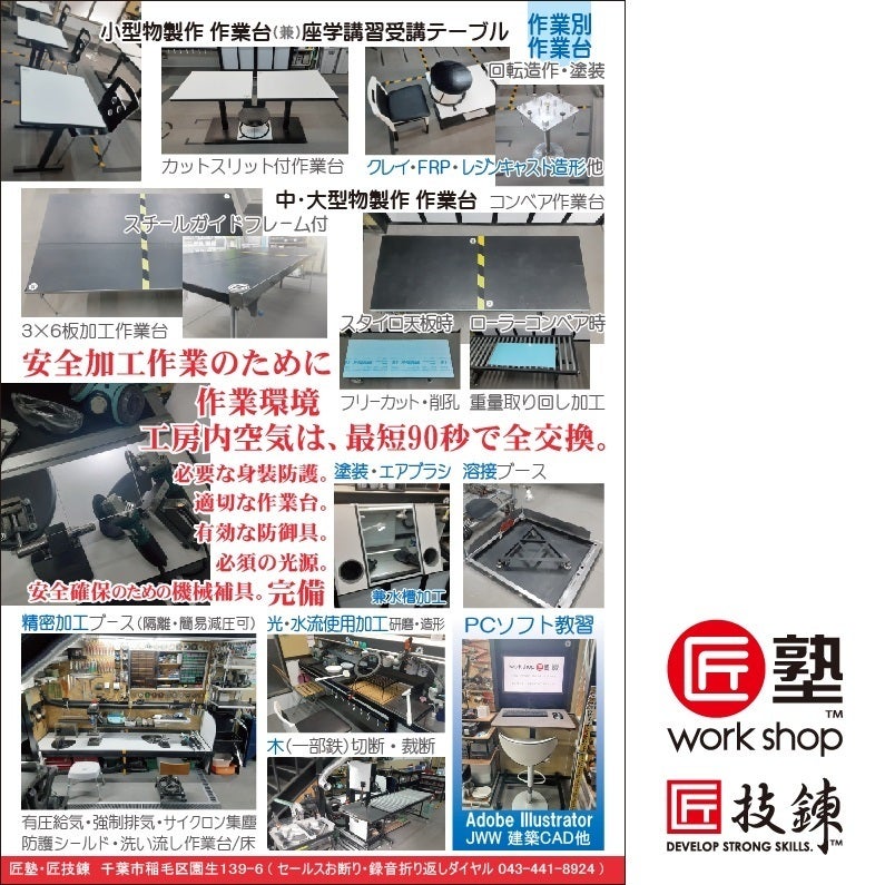 道工具のレンタル料金を詳しく! のご要望に料金表の画像アップ致しました!!道工具写真は、ほんの一部となります。各工種が分かりやすい、象徴的工具類となります。解体工~鳶工~(各造作工(木・鉄(非鉄)・樹脂・ネリ物)・電工(弱電含)・設備工)~リペア工/クリーニング工の使用する基本の道工具は、全て工房及び訓練棟にございます。各1点ごとの料金表はございませんが、主なレンタル料金区分として、4区分となります。詳細は、スタッフまでお問合せ下さい。※当塾おきましては、ガス(都市・プロパン)工の教習はございません。よって、使用工具類・圧力計/記録紙メーター等のレンタルもございません。工具メーカー様のご支援・ご協力頂ければ本当に嬉しいのですが...※塾内使用、教習用電動工具類のご協賛頂ければ本当ありがたいのですが...特にベビーサンダーは、この3年で4機、内部テールベアリング損傷で...ベアリング受座堅牢モデルか、容易交換可能モデルが..