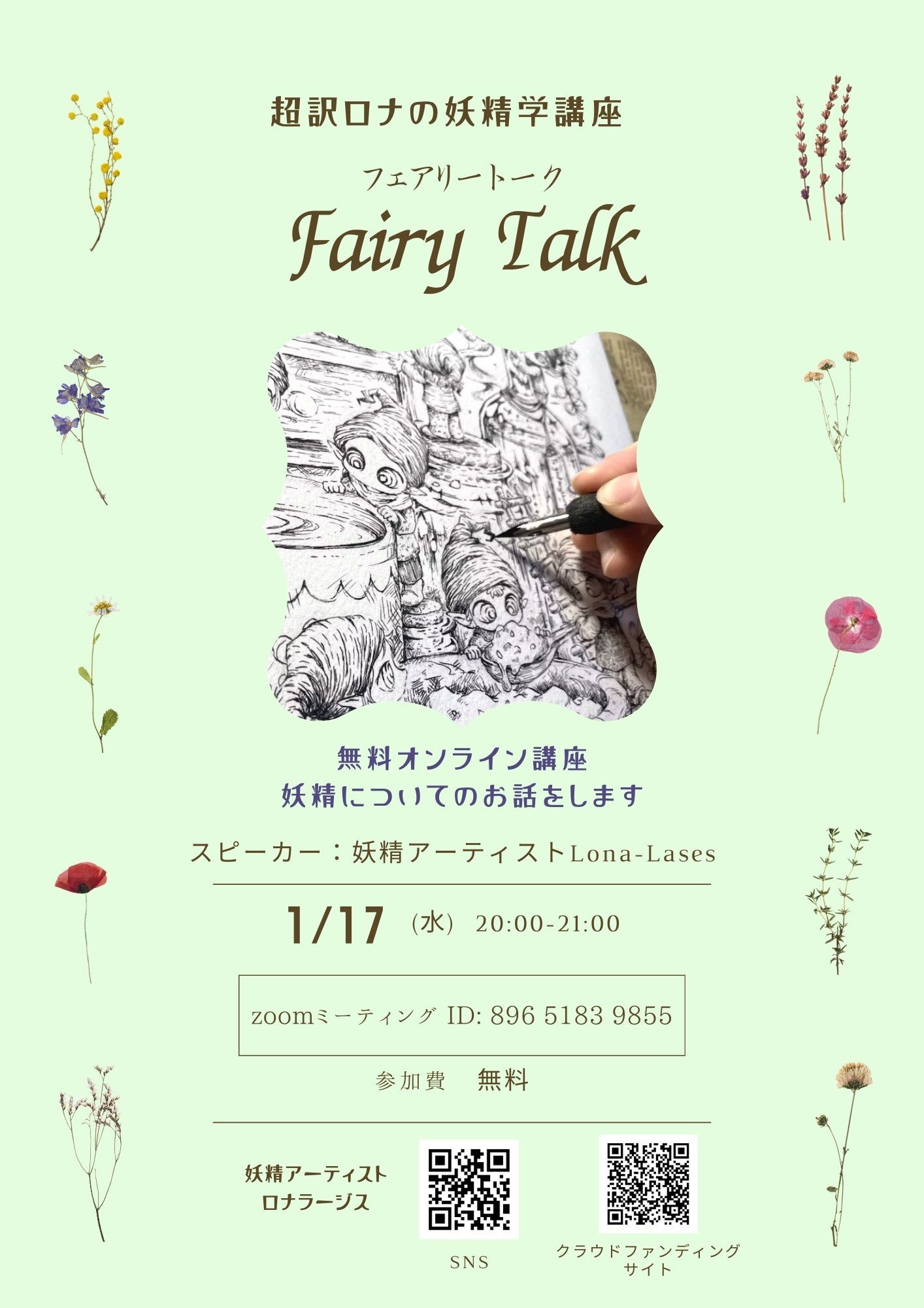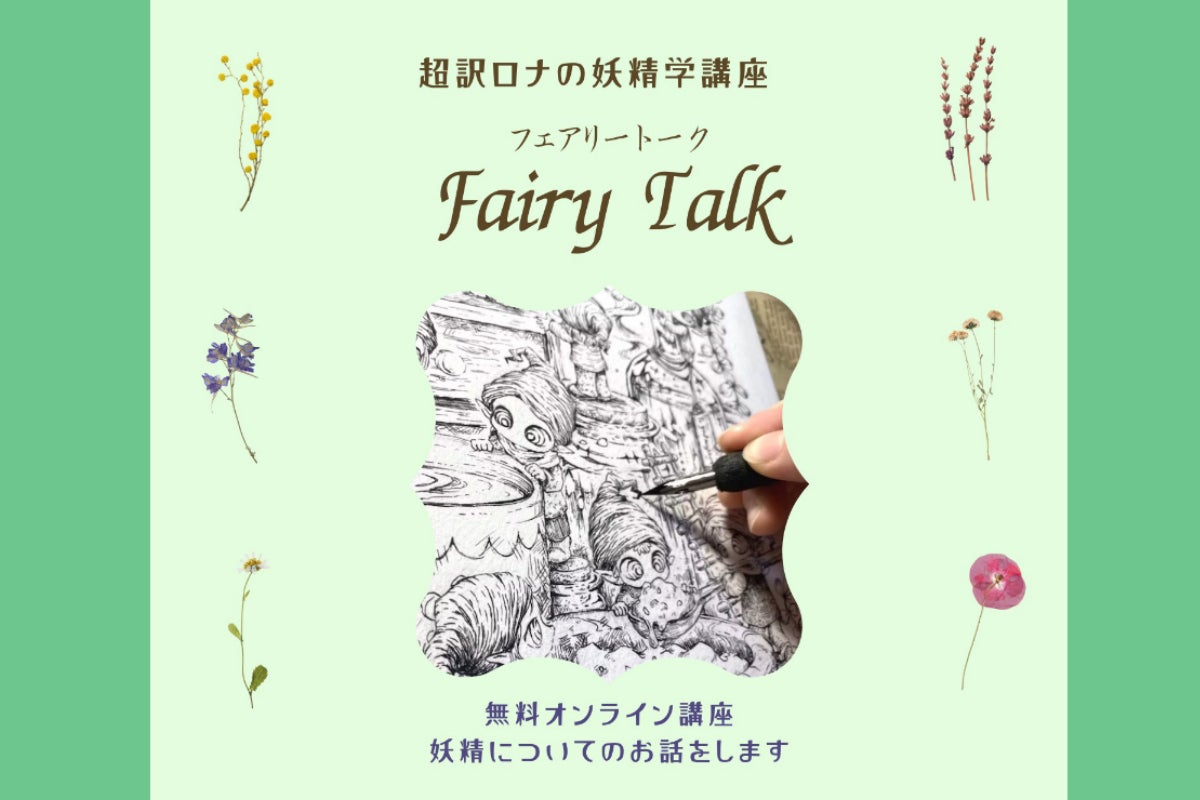 「超訳ロナの妖精学講座:フェアリートーク」として、どんな妖精がいるのか、どんな妖精のお話があるのか、妖精の特徴、棲むところ、好き嫌い、などなど、妖精についての様々なことをロナの解釈も含めて紹介するクラスです。