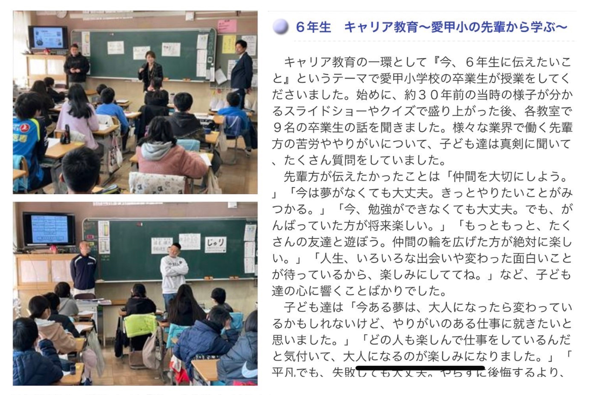 小学卒業から30年経った僕らが母校に帰り、小学6年生を対象にキャリア教育の一環として開催した