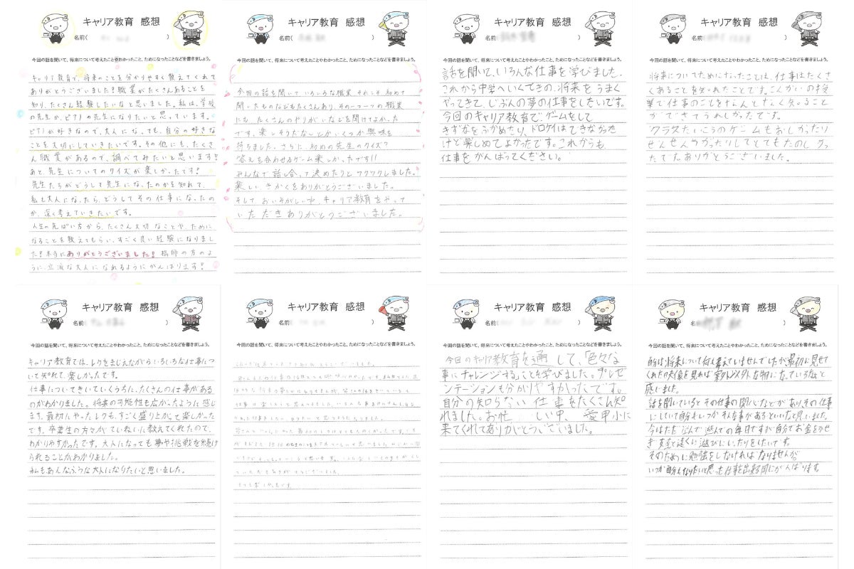 人生いろいろ企画を開催する際には、参加いただく子ども達に事前アンケートとイベント後に感想としてアンケートにお答えいただいております。その一部の画像を載せさせていただきます。