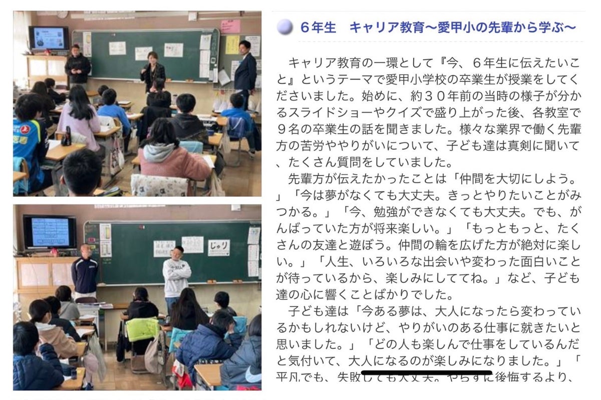 小学卒業から30年経った僕らが母校に帰り、小学6年生を対象にキャリア教育の一環として開催した