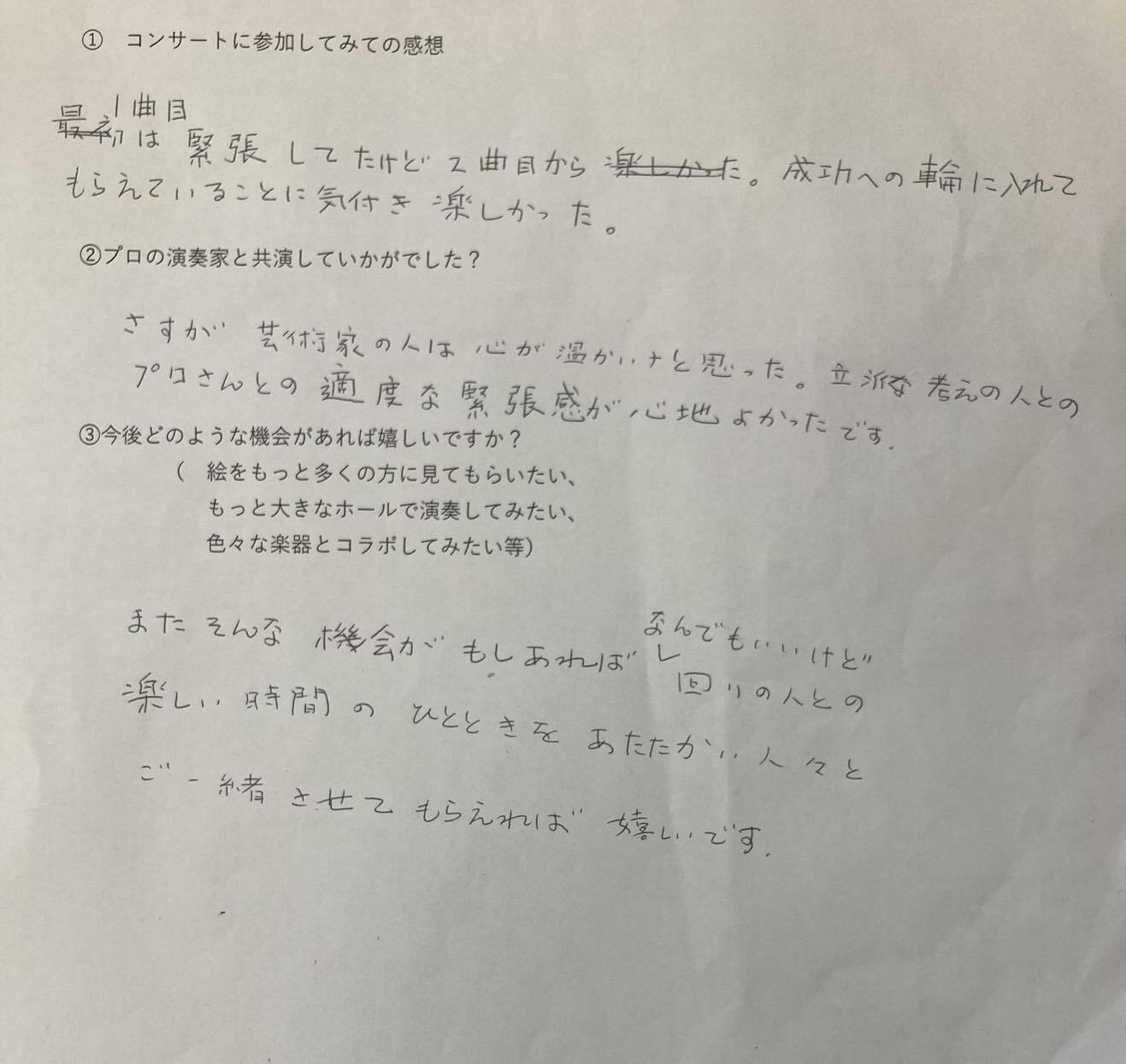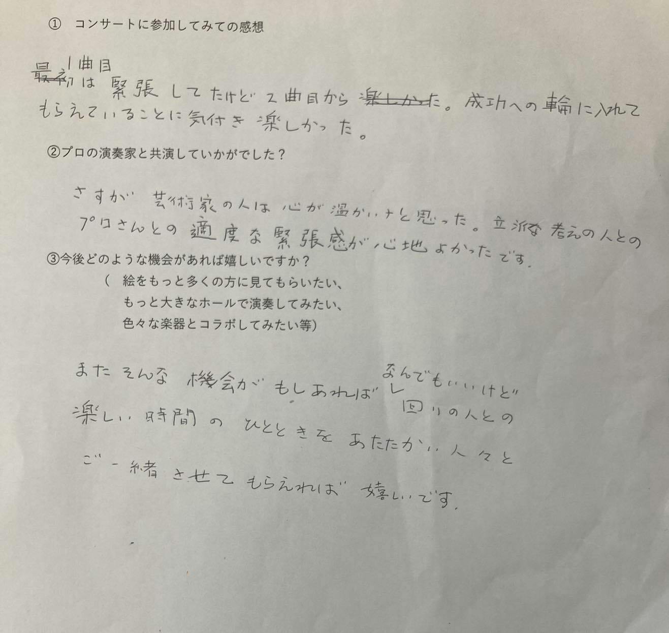 そのため、音楽の演奏がどのように障がい者の方の心に響いたのかわかりませんでした。