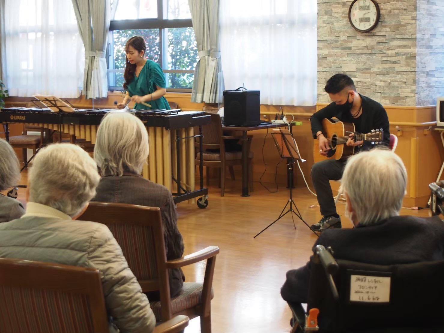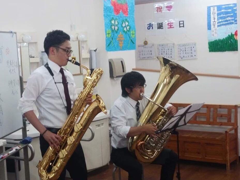 そのレクリエーションを当楽団に任せていただくことにより、スタッフの仕事の軽減になり、また生演奏を聴いている時間が、利用者様にとって楽しい時間であってほしいと思っております。