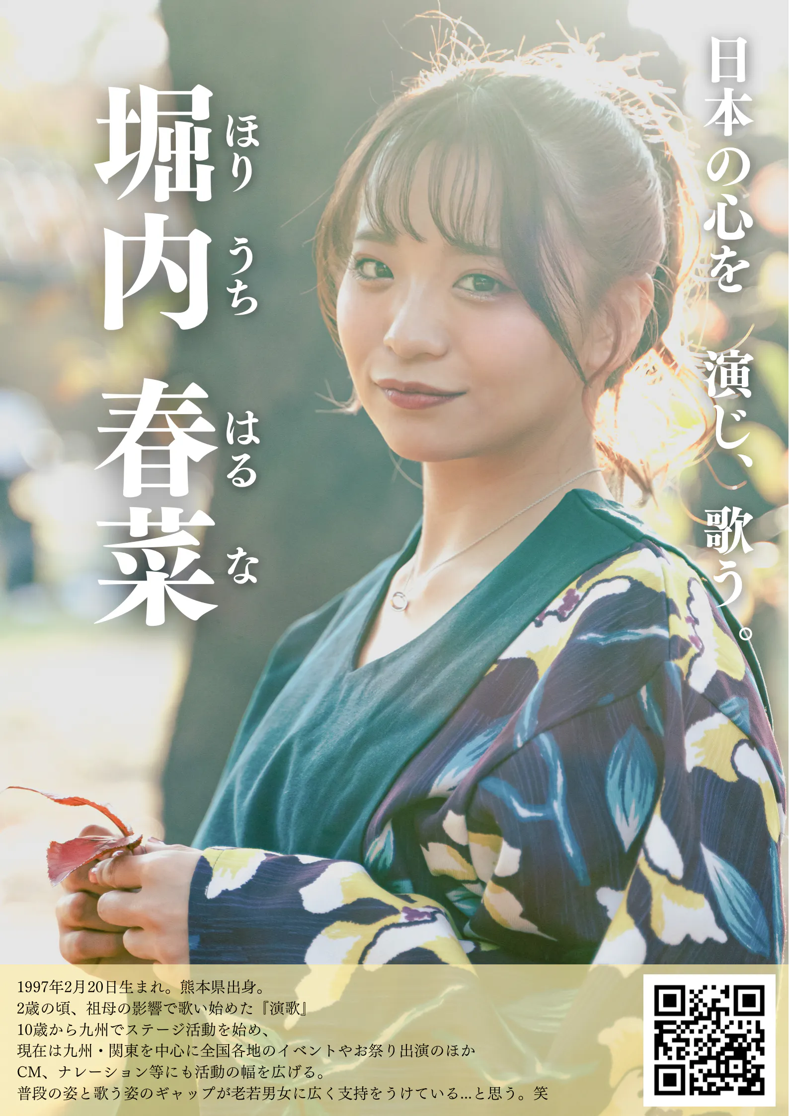現在は関東・九州を中心に、全国各地のイベントやお祭り、ライブハウスなどで『演歌』を歌って活動しております。