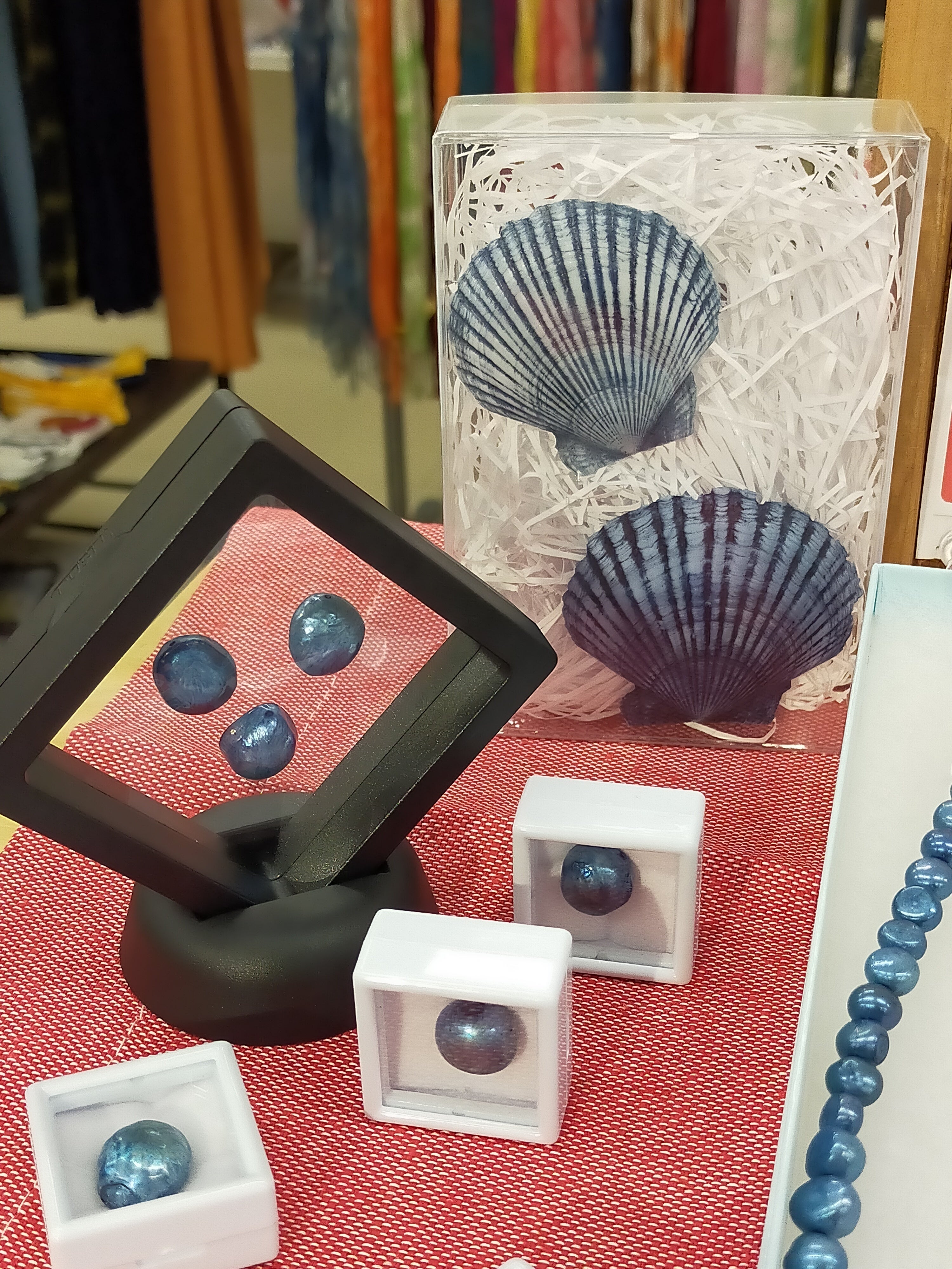 地元でジュエリー作家を約20年経験し、ジャパンブルーの真珠を作るため、約2年で自己資金約2.000万円を使い、真珠の焼き藍染めを製品化しました。