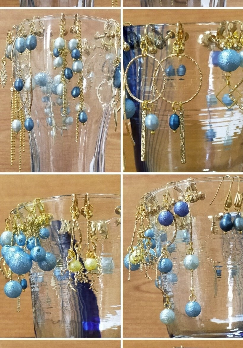 ・5.000円、藍チャームケース付き3本セット、ピアスとイヤリングセット