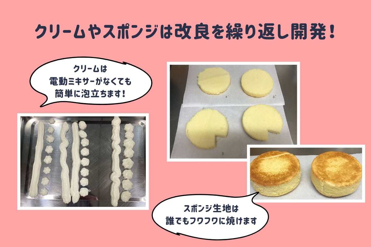 見た目も可愛く、味も美味しいケーキが"簡単”に作れるよう何度も何度も改良を重ねています。