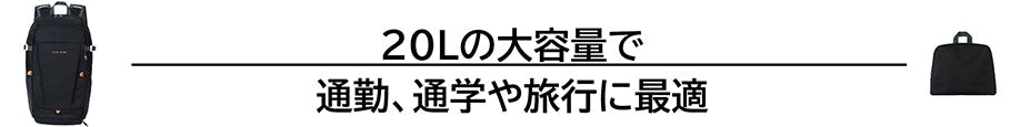 20Lの大容量で、通勤・通学に必要なあらゆる荷物はもちろん、長距離旅行や出張に必要な衣類、靴、洗面用具などを全て簡単に収納できます。
